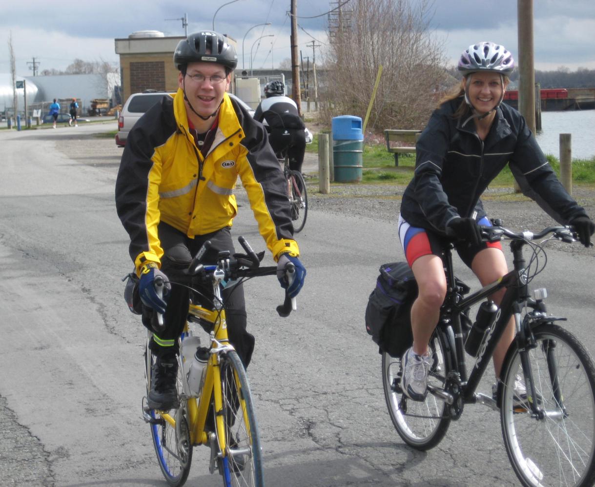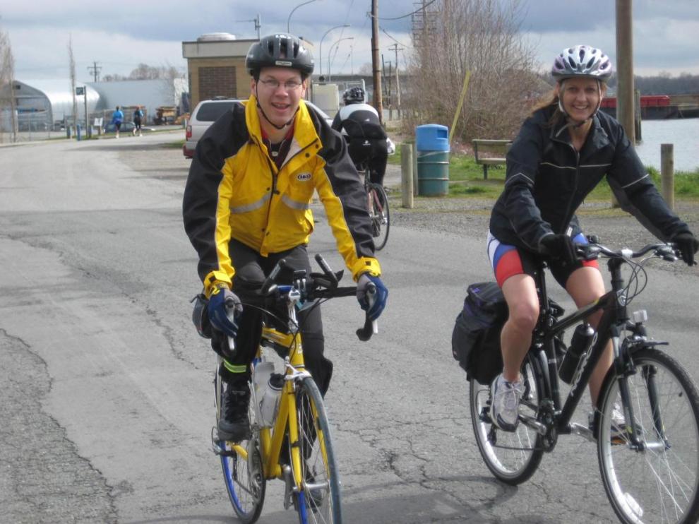 Brent Kusch & Laura Vander Veer riding the Steveston dyke
