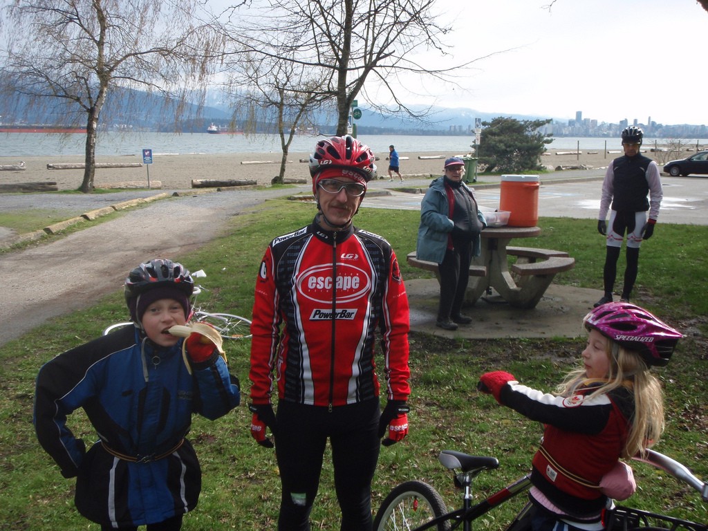 Casey, Alex & Danika Pope at the 25 km turn around on Spanish Banks