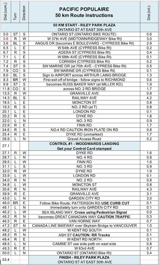 50 km Route Instructions