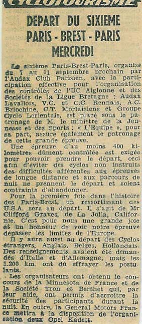 DEPART DU SIXIEME PARIS-BREST-PARIS MERCREDI