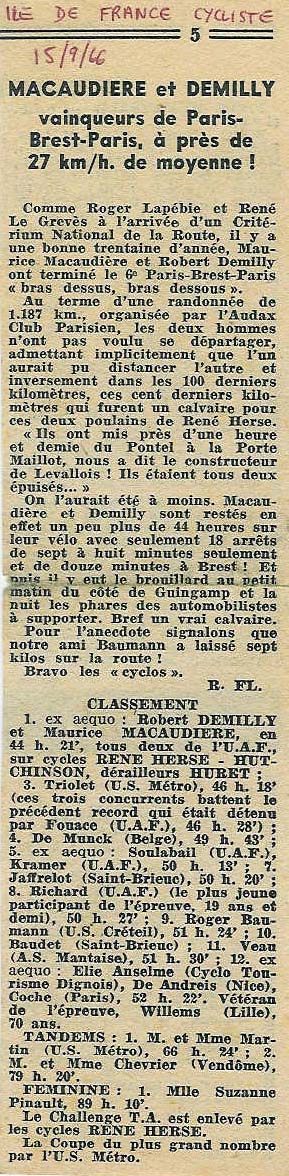 MACAUDIERE et DEMILLY : vainqueurs de Paris-Brest-Paris à près du 27 km/h. de moyenne !