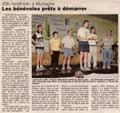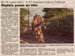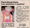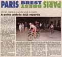 | The control town of Mortagne au Perche holds a unique place in the history of PBP. Being on the N12 it was on the original route. When the the route moved away from the N12, Mortagne was the only original control town to remain on the route (other than Brest of course). This newspaper issue was produced during PBP 1999 - riders were able to pick it up on their way back through town on the return leg. (That's how I got this - it sparked my attention because I saw a photo of myself catnapping on a cafeteria table not too many hours earlier. Very surreal.) EF |