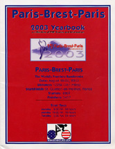 This is a retrospective of RUSA members' participation in PBP 2003. There are 28 rider stories (one of the contributions is more a survey than a story) sprinkled with a few photos and other images, surrounding a RUSA participants list with finishing times and other rider info. An interesting feature of this collection is how nicely the stories complement each other. Participants experienced similar sorts of things - encounters with the "British Triple", the overcrowding at Loudeac, and droopy head syndrome ("Shermer's neck") for example, are recurring themes - but the descriptions are always from a slightly different angle. The riders are moving at different speeds, passing through locations at different times and so their observations are out of phase with each other. It all adds up to a vivid portrait of the event that could not have been written by one person. You can think of this as a single story told from multiple points of view. One thing noticeably absent in this collection is any sort of "view from the front", though it must be said that these voices were heard in the RUSA newsletter following PBP [Fulton, Heine, Lyon]. Still, a ride account by any of these three would have fit nicely into this collection. RUSA wanted this yearbook to be a benefit for its members and elected not to broadcast an on-line version. Very few (only 4) of the contributors posted web versions of their stories, which is surprising these days, and in sharp contrast to the German PBP 2003 approach. Fortunately, one of my favourites, John Ende's PBP 2003 (ironically placed 1st in the printed collection - get it), is also self published on a web page - linked below. For the other stories, like the wonderful ones by Isabel Brackbill and Judy Isvan, and there are many others, you'll have to invest in a rusa membership. (I'm told that there are still copies of the 2003 yearbook available, and it's well worth pursuing.) Membership information is available on the RUSA web site. Thanks to Wayne Harrington for passing