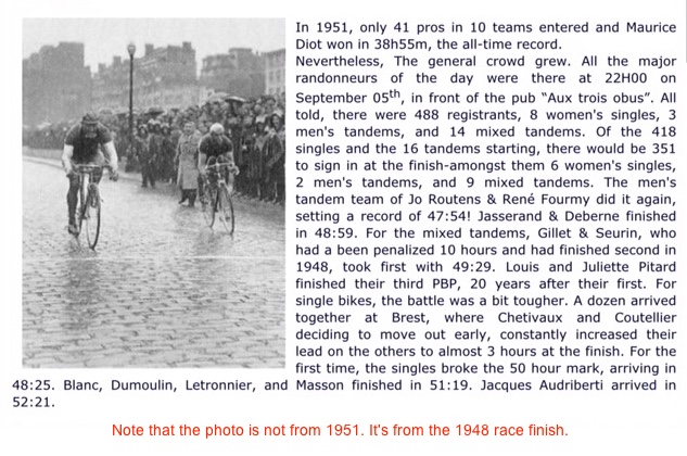 Alternate version of above: History of PBP: Racing and Touring (1986) by Robert Lepertel [translated by Johnny Bertrand] (Alternate posting: on Randonneurs Ontario site)