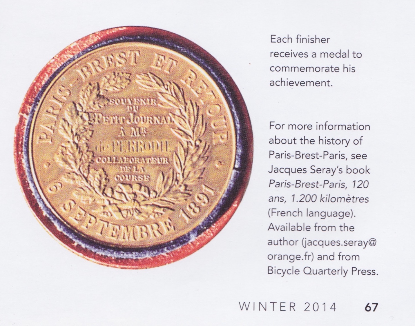 This is far more likely to be the official PBP finishers medal from 1891. This image is from Bicycle Quarterly, Winter 2014.