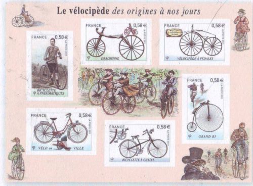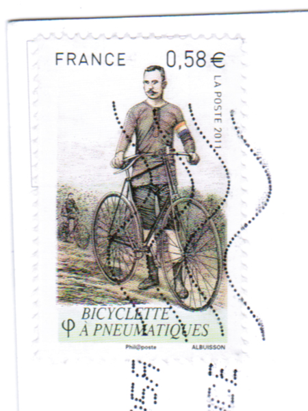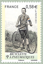 The iconic 1891 image used in a 2011 historical bicycle stamp series.