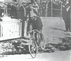L'arrivée de Maurice Garin sur la piste du Parc des Princes, pulvérisant le record de Terront. (Vie au Grand Air)