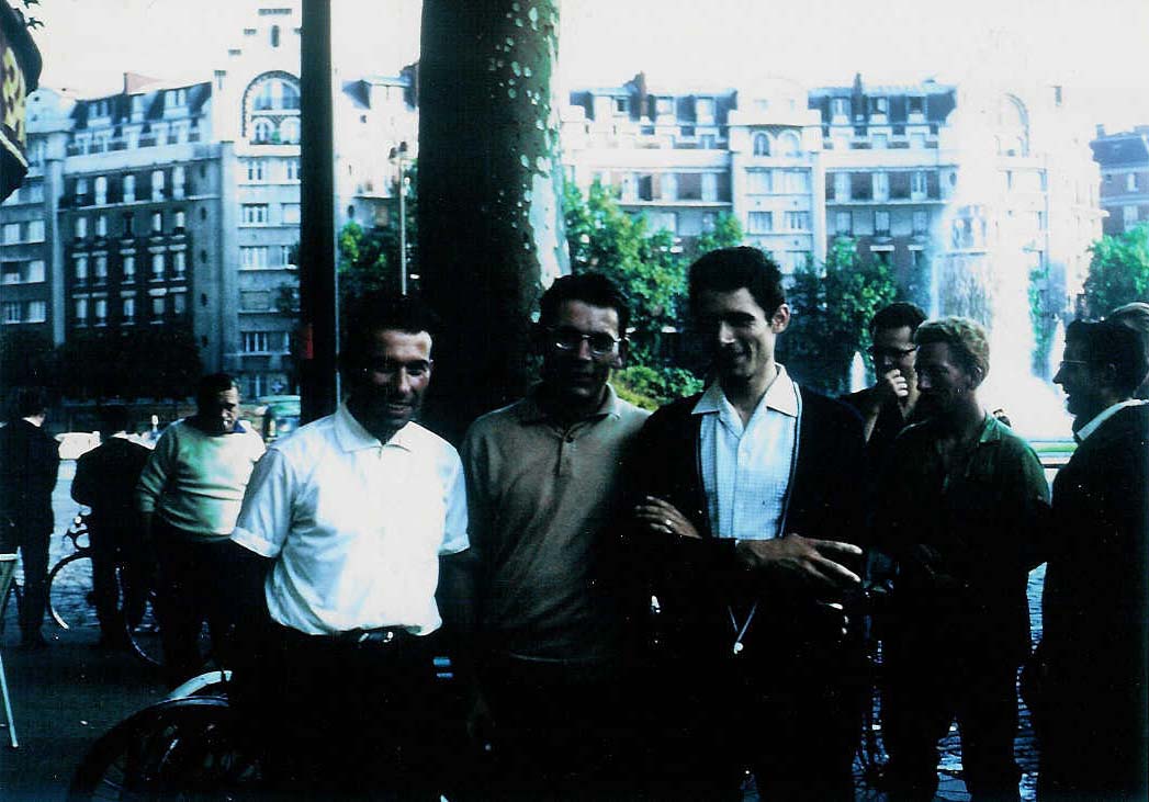 The two winners, Maurice Macaudière and Robert Demilly, together with Guy Bossière (wearing spectacles), the president of the U.A.F., at the arrival of PBP Audax in Paris-Porte de Saint Cloud. In the background, two further members of the U.A.F. can be seen, Rousseau and Savary (actually, they were rather walkers than bicycle riders), and by a very singular chance, holding his nose, Nédellec, the second of PBP randonneurs 1961.
