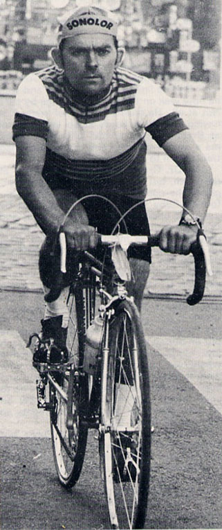 Little in stature but with giant strength and determination: 32 year old Herman De Munck, fastest with three hours to spare in the 7th Paris-Brest-Paris Randonneur trial. Although his time of 45h 39m on a machine fitted with three chain-wheels and five sprockets was nearly four hours faster than Hubert Opperman's 1931 effort on a single-geared machine, it was 1 hr 18 min slower than the Randonneur record set up by the joint winners of the 1966 event on a course six miles shorter. Absolute best is to the name of Maurice Diot (France) who won the 1951 professional race in just under 39 hours. (Source: "Brestward Ho !" (PBP 1971) by J.B.Wadley - page 53) |