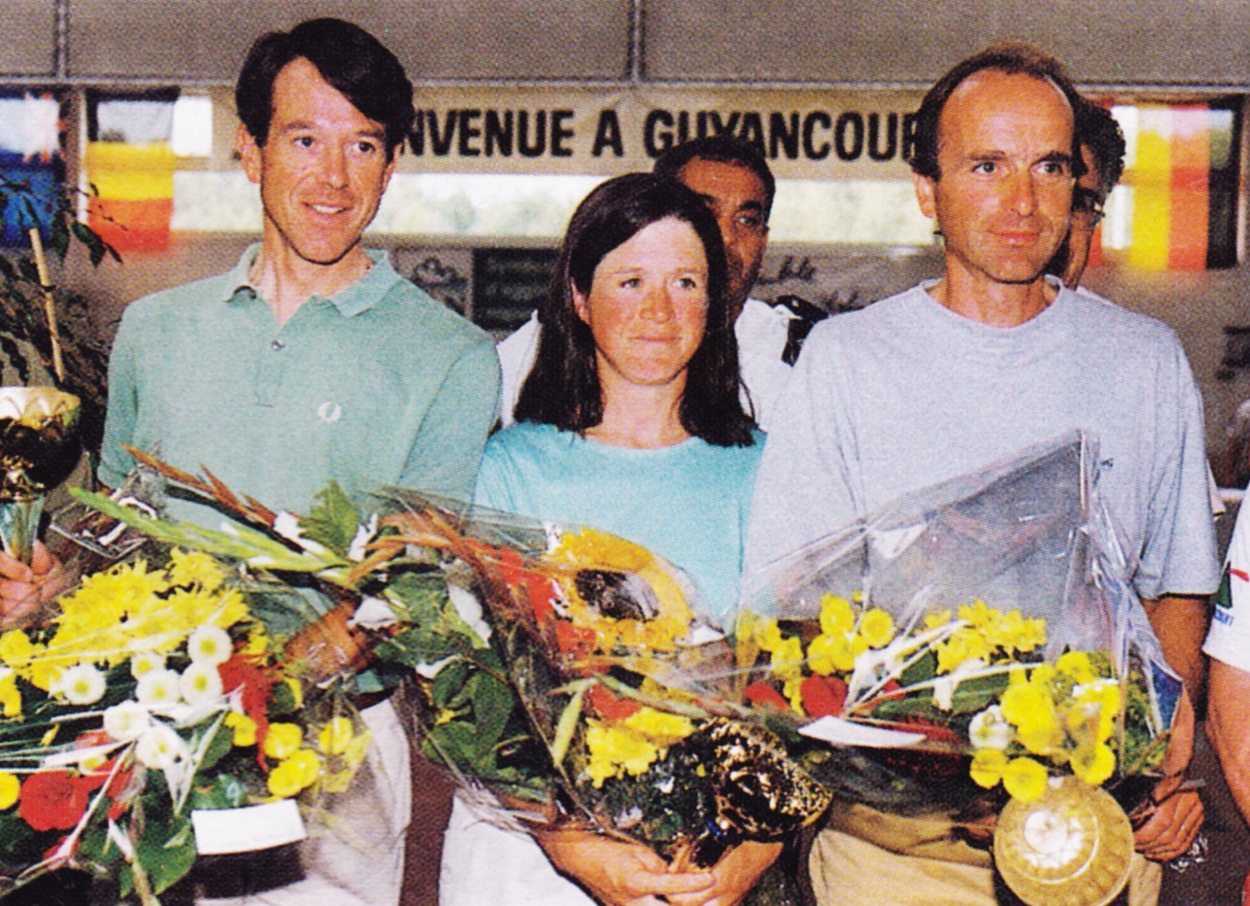 Les meilleurs de P.B.P. : M. Lyon (USA) entre C. Bocquet et P. Deplaix (Source: 1999 Plaquette, page 69, Photo: Maindru)