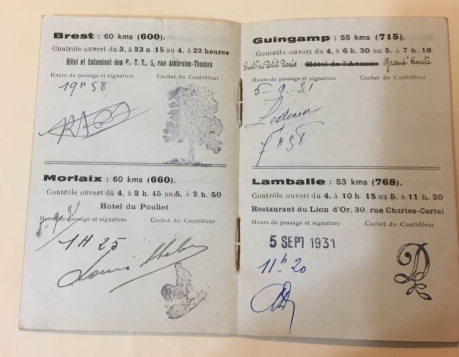 PBP 1931 - André Petitjean's control booklet.