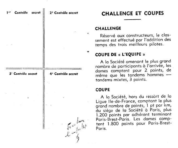 [Note from Jean Richard:] On the last but one page, the mention at the bottom refers to the homologation of the "5,000 randonneurs", an addition of 200, 300, 400, 600, 1,000, PBP, one Fleche Velocio (team event) and several other brevets in order to reach a total of 5,000 km: I made this present to myself for my twentieth birthday, and was the youngest titular of this distinction. |