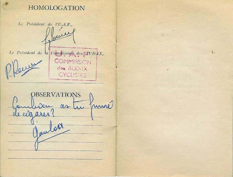 PBP Audax 1966 - Alain Gicquel's control booklet.