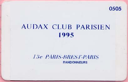 PBP 1995 - Eric Fergusson's control card
