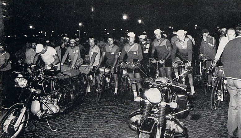 Avant le départ réel : grosses motos de police et petits vélos de l'A.S.P.P.