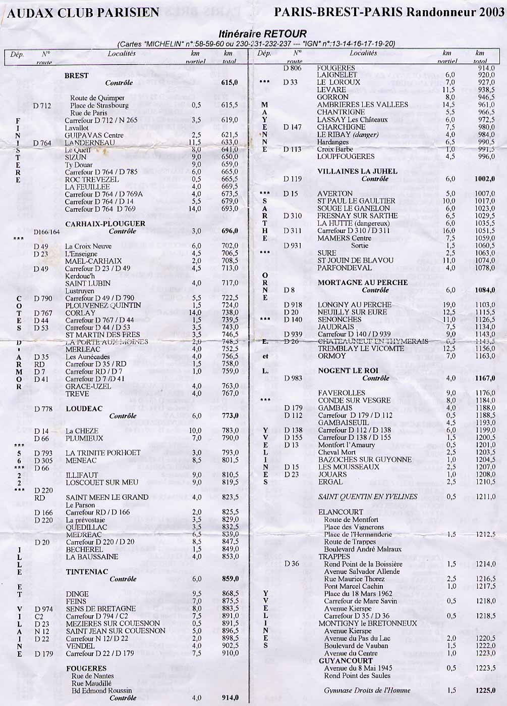 2003 Route Sheet - Page 2