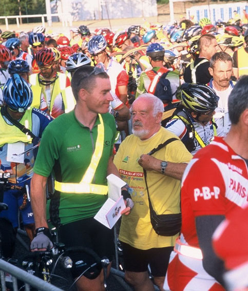 PARIS-BREST-PARIS: AN ACCOUNT INTRODUCTION The Paris Brest Paris is a 1200 kilometer cycle which may be regarded as long distance cycling's equivalent of the Tour de France or the Olympics. It takes place every four years, over undulating and open country roads. All participants must qualify to gain entry to the event and this is done by riding a Super Randonneur series in the same year as the event. This consists of a combination of 200, 300, 400 and 600k rides, all of which must be completed within set-down time limits. These limits are a maximum speed of 30k.p.h and minimum of 15k.p.h. Each participant selects one of three expected completion times (80/84/90 hours) with each group leaving at a different time. On starting the event each participant is given a brevet card, which states the controls where the card must be stamped to verify that the participant is following the pre-designated route. At these controls food is available and if necessary sleeping facilities for longer events. At the 2003 P.B.P there were 4033 riders, representing 25 countries and for the first time ever 5 continents with the participation of Audax Japan. There were five riders present from Ireland; Darren Lovejoy (Sorrento), Padraig Curry (I.V.C.A), Kevin O Sullivan (Midleton) and myself, Paul O Donoghue, also of Sorrento C.C. As is usually the case there was some other Irish participation - John Connaghan, from Donegal, was riding under Audax Scotland colours. In previous years there have been Irish cyclists riding under Swedish and U.S colours as well as German and U.S cyclists under Irish colours. BACKGROUND This article sets out my experiences in the 2003 P.B.P. This was to be my third P.B.P, my previous times being 74 (1995) and 65 (1999) hours. On both occasions I had stuck with a pre-determined plan of riding straight through to Brest and sleeping there; while stopped I also took advantage of having a shower, something that can mean the difference between a comfortable ride the next day or not. On both occasions I reached Brest in about 25.00hrs just as it was getting dark, while other riders carried on. This was something which I didn't feel up to at the time. I was to know better as I gained more experience. Since 1999 I had ridden a 1200k in Australia which I had hoped to use as a dry run for P.B.P. Unfortunately this did not really turn out to be the case and for much of the time it was just a matter of flogging myself from Canberra down the coast to Victoria and back across the mountains. More importantly I had ridden the London-Edinburgh-London (1400k) and managed to ride up to Edinburgh (700k) and 200k back down before sleeping. I was fairly ropey by Carlisle (843k) and would have liked to stay there. However, there were no spaces available, other than the floor or a head-down-on-the-table experience. As none of these was too appealing at the time I pressed on. The next stop, a youth hostel booked for the event, was on the wrong side of the Pennines but I was fairly confident that there would be a bed there. The important point was that I had been able to cycle for about 37 hours at this stage and had learnt a valuable lesson for Paris 2003. I realize that this might seem a bit strange to some people, to cycle so far without sleeping, but as I was on for a good time the less I stopped the better. It's one of those situations where you need to push yourself beyond what you had previously thought you were capable of; it had worked out for me on this occasion and mentally it was a huge bridge crossed for Paris. As it turned out it was just as well that I had made it to the next control, as all the deluxe red telephone boxes I had eyed on the way north now turned out to be full of happily-snoring cyclists! 2003 QUALIFYING In any P.B.P year the qualifiers must be completed by late June to facilitate the processing of all the entrants. This year, we kicked off with the 200k on St. Patrick's weekend and had completed all the events by the end of May. From then on it was a matter of maintaining fitness and enthusiasm levels until the start on Monday, the 18th of August. In the meantime it was becoming all too apparent that Europe and, in particular, the Paris basin was experiencing a heat wave, which was a bit worrying for me as I always find myself struggling on hot afternoons after cycling through the previous night. However there was not much that could be done about the weather besides staying properly hydrated and not getting burnt; the only other option I could think of was if I needed to stop/sleep at any point, I should be aiming to do so in the hottest part of the afternoon between 14.00 and 16.00hrs. THURSDAY I got to Paris on the Thursday afternoon 14th of August as I always like to have some time to check out the route and iron out any mechanical problems caused by flying. We were staying at the same hotel as the Canadians, where long distance cycling is relatively popular, particularly in British Columbia. FRIDAY On Friday I went out for about 40 miles to test the legs/bike and check out my route sheet-reading skills. Later I rang a friend whom I had met during the London-Edinburgh-London. He was local cyclist, Richard Leon, who lived within 10k of the start. Not only was Richard a nice guy, but he was also an exceptionally experienced cyclist. This was to be his eight P.B.P. Five of them were completed under 50 hours and all were done without the aid of back-up. We arranged to go for a spin on the following morning, by which time all the Irish participants were expected to be in Paris. SATURDAY At breakfast the following morning I can see Richard arrive at the hotel early and without a bike. One hand is in a fairly severe bandage; he has spent part of the previous night in the hospital, as a freak accident at home has seen him sever a tendon and the medical advice is that he won't be able to use his fingers well enough to manipulate the gears/brakes. This is obviously a devastating blow, 