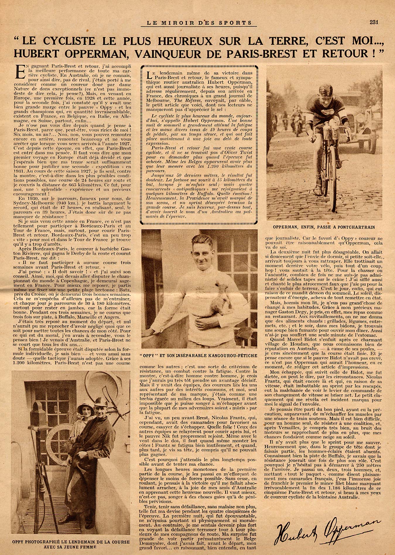 HUBERT OPPERMAN, VAINQUEUR DE PARIS-BREST ET RETOUR !"