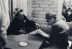 to bounce over, the odd Red traffic light to creep I forget what I ate, or the name of the ointment the nurse afterwards rubbed into the tendon, but both were good and I free-wheeled down into Laval town centre in high spirits. I had been making calculations in the Control and reckoned that 80 hours was in the bag. Then on the other side of the town, when climbing, the ache returned. I shifted the toe to find relief, and immediately up the leg shot a stinging pain searching, apparently, for the knee where it doubled in intensity. Bang went the optimism, down dropped the morale. Of all cyclists' physical enemies, knee trouble is the most feared of all, and it had attacked me with 180 miles still to go. Then to cap it all up rose the wind again and I began to wonder if I would manage to stagger home in 90 hours or even to finish at all. I rode for 10 minutes at about 5 m.p.h. afraid to put any pressure on the right leg. Could I pedal 180 miles in 24 hours with one leg? On the next hill I found that even with the right leg resting the pain still shot through the knee with each revolution of the pedal. Then, as suddenly as it had come, the twinges stopped. Perhaps old Wizard Beaumann had waved his wand and banished the curse to some rival knee. Or could the attack have been sent by Providence as a reminder that we must ever be thankful for small mercies? If anything the tendon ache was worse than before, but now it was nothing with the knee right again. This "drama" took place along the section where--in the opposite direction and with a good following wind--I had ridden behind the tandem. Now it was my turn to act as pace-maker. These fellows were just getting back onto the road after a stop, and tacked on behind me. After a mile or two I looked round and "invited them to lead" as the racing boys say, but their spokesman explained that one of them was having a bad time. Within a mile the victim had stopped again, his friends with him, and I arrived at the Hotel Normandie--top of the P-B-P Control League--on my own. As well as occupying my time converting kilometres to miles, and calculating how much I could get inside 90 hours, I had been working out figures of a different kind. The answer posed an additional problem which would have to be settled before long. In the Control, waiting for some of his riders, was Monsieur Lequet. "Ah, Monsieur, here we are again. At Rennes you asked if I would speak to you in English" I said. "Yes please. I have a decent knowledge of your language but I do not always understand it when it is spoken to me. "You don't mind on what subject I speak to you?" "Not at all--introduce any subject you like." "Fine" I said "Lend me 50 francs." M. Lequet obliged and the financial problem was settled. The prices at all Controls were very reasonable, and the supper and bed at Rennes had cost less than £1.50, but I was eating so often that my supply of notes carried in a plastic bag in a back pocket of the jersey was running low. It was logical