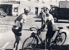 I It was on this last night session that I had a curious experience each time we stopped--and we stopped plenty, at cross roads, to check the route, to pump up tyres, to wait for anybody had been delayed. I would pull up with the brakes normally, put both feet on the ground and then find the upper body dropping forward and--on the first two occasions--my head hitting the 'bars. Even when making deliberate resistance the tendency remained. It was probably because by now the hands were quite numb and failed to keep the arms rigid, encouraging the sleepy head and upper body to fall into the arched position occupied during nearly 60 hours of pedalling. Or could it have been my co-ordination at fault? Was I putting my feet on to the road before the bike had stopped and continuing with the momentum? Now the signposts were pointing to Rambouillet, the summer residence of the President of the Republic of France, and a town which has already appeared in this story. It was near here at Poigny-la-Foret where in 1956 Brian Robinson resisted efforts to get him to ride the professional Paris-Brest-Paris. Although it was an uncomplicated run through the sleepy town we stopped for five minutes for various reasons. I was now on familiar ground. As well as being a popular tourist area, Rambouillet has played a great part in road cycle racing. In 1953 I watched pale-faced, frail-looking Jacques Anquetil pedalling with pointed toes through its then cobbled streets on the way towards that first sensational victory in the Grand Prix des Nations time trial. When the distance was trimmed from 140 kms (87 ½ miles) to 100 the race still passed through the outskirts of the town. Indeed when we set off again we were along that very road leading to Chevreuse from which the 1971 "Nations" would be starting in five weeks' time. I was glad now to be with the party. My little lights on their own would have been useless through that dark forest road. This must have been one of the stretches where scores of families used to park on Nations day and leave picnic lunches to cheer Anquietil & Company on their way. Then from the comparative warmth of the woods we began to shiver in open country, and after a session of slow riding dropped down steeply into the valley of Chevreuse and into the town of that name which seemed to have been put on ice for the night. I stopped (doing the involuntary trunk-bending-forward exercise again) to flap my arms and stamp my feet and generally try to raise a little heat. I was already wearing light gloves and track suit, with the top stuffed with a newspaper picked up during the coffee halt at Maintenon. The addition of a racing cape stopped more cold getting in, but did nothing to improve the central heating. I must have stopped three times more in the next five miles to flap and stamp again. Each time, patiently, and without complaint, the other fellows waited for me. They didn't seem to feel the cold, and the temperature probably was not all that low. It was getting on for 2 a.m., and as well as the circulation of hands and feet being sluggish after prolonged pressure on 'bars and pedal, my body resistance no doubt was falling. Somehow I had got it into my head that once through St. Remy the ride was as good as over. Always a dangerous supposition, this! I knew that on the left the road led over the celebrated hill of Chateaufort famous in older "Nations" and Bordeaux-Paris lore, and imagined that straight-on was flat. What a blow for the morale to find that out of Courcelle, 10 miles from the finish, was one of the longest and most punishing climb of the whole journey! Yet it is an ill-hill that brings no good. The hard work brought some warmth back to the body, though not to the hands and feet. So off again to walk the last 200 yards and flap the arms and shake the fingers at the summit. Again, there were the boys not far ahead, off the bikes or riding slowly awaiting my return to the fold. Usually the reward for a hard climb is an easy drop down the other side. This very early Friday morning the prospect of a long cold descent to the lights of Paris was not so pleasing. In fact it wasn't so bad after all, the temperature rising as we fell. Maybe some heat came from the powerful overhead street lamps which also shone clearly at the first two crossings to reveal big P-B-P arrows chalked on the road. We could see, a few miles to the east, aircraft taking off from Orly, perhaps to fly round the world in less time than we had taken for our own little jaunt. Then we lost the trail. Cold fingers fumbled with maps, bleary eyes peered at them by torchlight. I stamped around looking for fresh clues. "Longjumeau" said a sign in one direction "Plaiseau" the other. No, it was somewhere between the two. From the distance one explorer called that he had picked up the scent, and Eureka! we were in the hunt again following the chalk signs to Antony. These delays did not worry us in the least, knowing that we could now push the bikes to the Croix-de-Berny and still finish hours inside the 90 limit. I thought, though how terrible would be the frustration of the customer six hours behind us on the road striving mightily to get home before the Controller pulled down shutters to suspend P-B-P business for another five years. It would, of course, be daylight when Tail-Light-Charlie tackled this final stretch and the arrows would be easily seen. But would they? By then the roads would be choked with traffic and his troubles even greater. Now there it was at last, the sign we had been looking for since La Celle Saint Cloud, 753 miles ago: Croix-de-Berny. We turned right onto a main road bright with yellow lamps. I hit a drain or something and felt the back rim again on the blocks, and noticed that the front tyre was nearly flat. The lights were red on the big cross roads but the duty gendarme waved us across with a Bravo cry, just as if we had been real racing men. Half a minute later we were checking in for th
