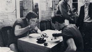 such a fashion. Since the advent of Jacques Like the wind and the hills, such a strain would have been a serious business to a man in a hurry with 300 miles still to go. For me, as yet it was merely a nuisance, and I realised just how lucky I was to get so far without any serious physical trouble when I caught a chap on the long climb just before Saint Brieuc. "How is it? I enquired. "Terrible--I ache all over, and I can't stand the heat." "Why don't you walk up the hill?" I suggested. "I have walked several and went like a bomb after the break." "I daren't get off here. If I did, I'd flop out on that grass and sleep for six hours. No, I must get to that Control at Lamballe before I stop again." It certainly was hot even though I was now back on that bit of road which was under the influence of the fresh wind blowing off Saint Brieuc Bay. The busy town of that name with its traffic lights, pavé and cycle paths provided a welcome relief from the hours of solitude on the open road, and soon I was in Onion Country again and only 10 miles from Lamballe. Unlike my acquaintance on the hill I had no problems about getting back on the bike after stopping. I was looking for a suitable spot to satisfy, as the French say "a major personal need" when a toot from behind indicated that a friendly car was about to pass. This one bore a G.B. plate, pulled up on the grass verge ahead, and out of it popped a club cyclist I had met at various Vaux Grand Prix races in Co. Durham. I stopped. My friend quickly explained that he and his wife and daughter were on holiday in the area, had seen the string of Randonneurs on N12 and guessed that he had chanced upon the Paris-Brest-Paris competition he had read about many times in my articles. I suggested he went on ahead and met me for a longer chat at the Lambelle Control, now only two of three miles away. I continued my search for the convenient gate and hedged field and found one on the opposite side of the road. On emerging a few minutes later I took the bike and began pedalling towards Lambelle. There was a sudden commotion ahead, a screeching of brakes and less friendly klaxoning than had greeted me from the G.B. car. No wonder. I was riding on the wrong side of the road. . . Why? A matter, I think of basic philosophy, a simple association of ideas. I had been speaking English to a friend and was looking forward to seeing him again at Lamballe. My control system, jaded after two sleepless nights issued orders in English and sent me pedalling off on the left. I found my friends waiting for me at Lamballe Control where I made the pleasentest of all stops on the trip. My temporary "Manager" took my bike, parked it in the shade, pumped up the tyres. He bought a drink, then sat with his wife and little girl while I tucked into yet another meal. By luck the "official repairer" was just round the corner, and my friend went round with me. The patron, himself a cyclo-touriste, left whatever job he was doing, quickly had my Lejeune on the clip, and trued up the back wheel the best he could. He also solved the mystery of the flickering rear light of the dynamo which several bystanders at Controls had attempted to fix. He changed the bulb. . . Not that it would be much help, because the mechanic said it was foolish using a dynamo with such light tyres. While I went back to the Control to have the Route Card counter-signed, my friend found a fruit shop and sent me off with a bag of juicy peaches--and on the right side of the road. Before leaving the Control an official told me that De Munck had finished in Paris two of three hours earlier. At the moment I was 170th "at about 280 miles". That interlude had taken up perhaps an extra half-hour, but had been well worth it. I can't say that my average speed shot up as a result but at least it did not go down, which in itself was quite a victory at that critical stage of the journey. Once again I had come to the hot late afternoon period during which I usually suffer after an all-night ride, and in this case it followed two on the trot. I took the hills steadily, in the saddle, and nearly all on the 42 x 24. I remembered many of the landmarks I had passed yesterday during my encounter with Monsieur Armagnac. How far ahead was he now, I wondered? Just about the point where I had "caught and dropped Oppy" I had to change the back tyre which went down with a sudden hiss. While completing the job a cyclo-touriste appeared from the opposite direction. He came from Rennes, he said, and had ridden Paris-Brest-Paris five years ago in 80 hours. This time he had planned to do 75, but a change of jobs two months ago made it impossible for him to get the time off. As is usual in France when addressing a stranger, I called him Monsieur. He told me off. Among the Cyclos nobody is a Monsieur, everybody a Camarade. "Keep on steady as you are. You're hours inside. You should do 80, just like I did in '66". On leaving Brest at 4 a.m. I had set my sights on being at Lavel for the second major stop, but now I was beginning to wonder if it would not be better to settle for Rennes 45 miles earlier. I walked two more stretches of 200 yards, not because they were uphill. They were strewn with loose chippings and I only had one spare tyre left. It was lights-on for the last five miles into Rennes, and on the run-in I began seeing things that certainly weren't there. Once a bat-man seemed to be hovering just in front to the right; it was just a passing car's headlights showing up a sign that our thick N12 was about to cross a thin minor road. In the city itself the combination of my smeared bi-focals, the headlamps of a car held up at traffic lights, and the Red itself had me thinking for a few seconds that the whole of Rennes was on fire. I was glad to get to the Control and find that I was still in control of myself. No. The Laval plan would have to be scrapped. I would sleep there at Rennes. I checked in and asked if there were any beds available, b