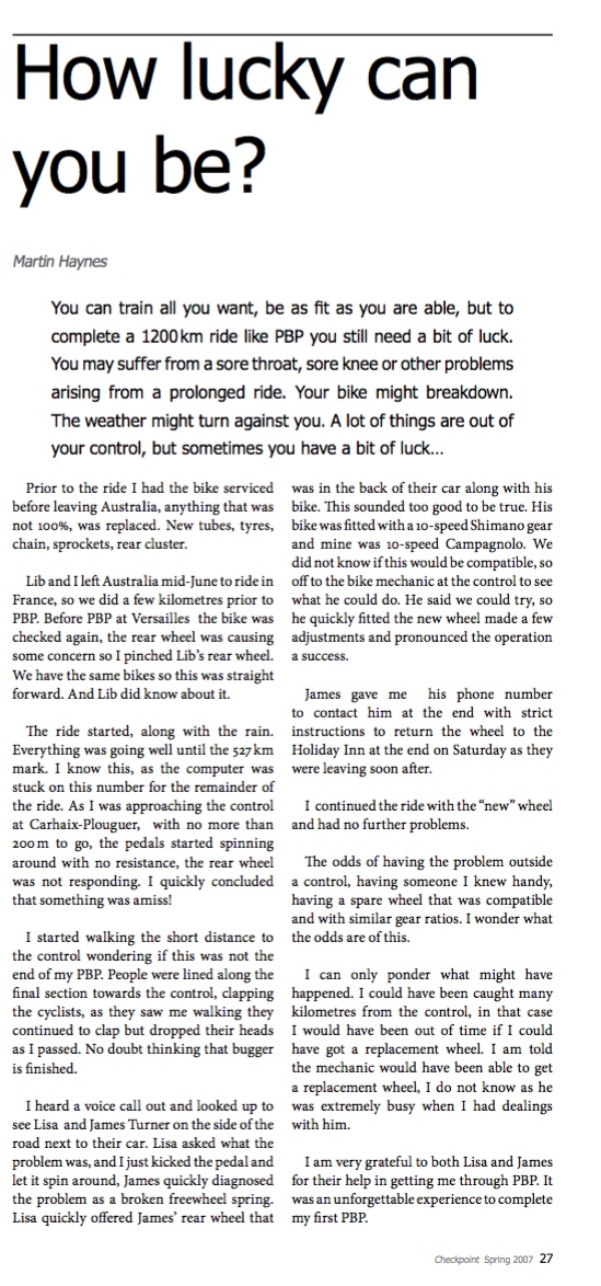 PBP 2007: Paris-Brest-Paris by Mark Wooldridge *(web.archive)