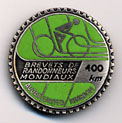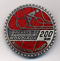 I don't know what this pin is exactly - it was in the baggy with John Hathaway's pins. (Harold Bridge is the executor of the John Hathaway pin baggy.) Perhaps it is an AUK pin acknowledging a PBP completion? [Additional, Nov 2007:] Some dating info about this pin has been offered by David Minter from the Australia: "[The pin] shows an AUK PBP medal/pin that was awarded up till the early or mid 1980s."