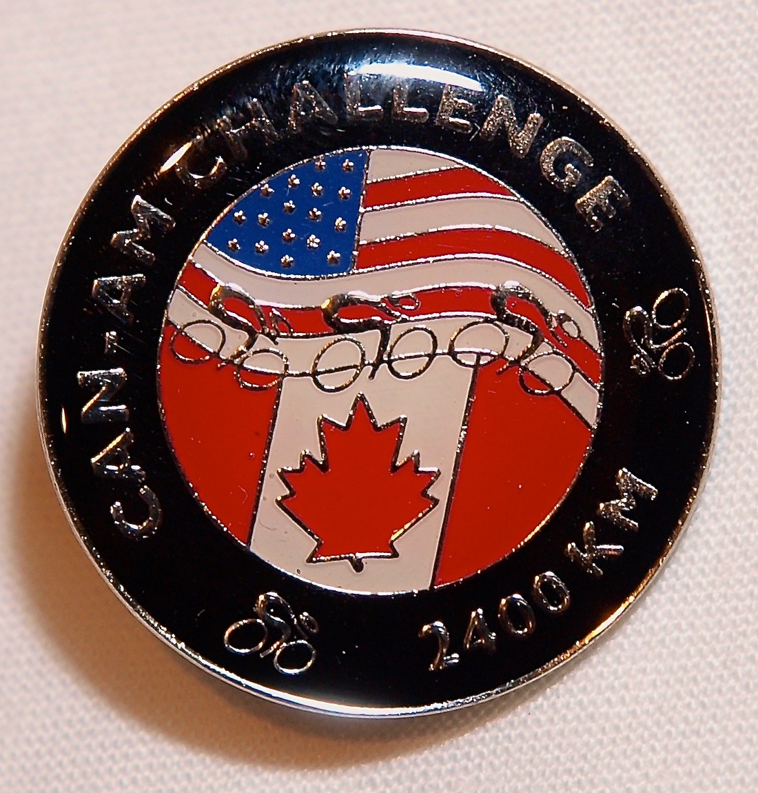 The Can Am pin for completing a 1200 km brevet in both Canada and the US in the same year.
