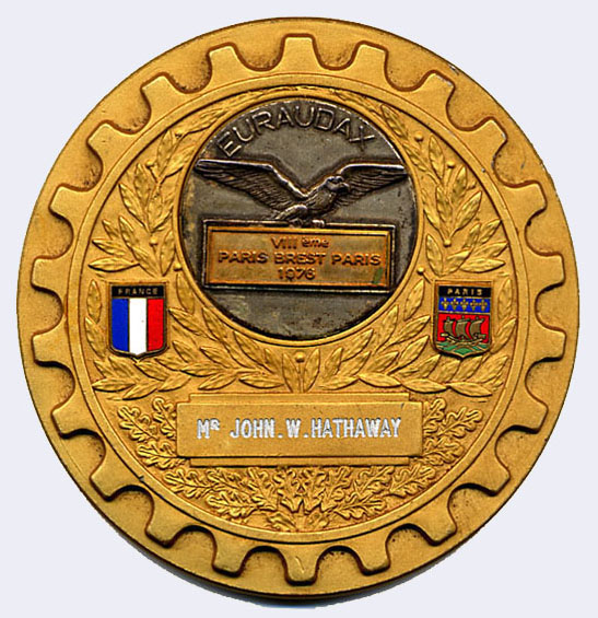 This was John Hathaway's finishers medal from the 1976 Audax PBP. Hathaway's1976 ride was