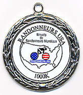Randonneurs USA awards a 1000 km medal to anyone who accumulates 1000 km in one season in RUSA brevets. Wayne Harrington earned this particular medal - he rode 1600 with SIR (Seattle) in 2002.
