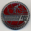 When a rider completes a brevet, a finishers pin is awarded. For most randonneur clubs and national organizations this means that a medal, which has been designed and produced by Audax Club Parisien in France, is ordered and received by the rider some time after the event. Randonneur clubs and organizations have the option of designing and producing their own pins. This was the option chosen by the membership of BC Randonneurs in 1985 and the tradition continues today. Every year there is a call for members to submit pin designs. Shortly after this the randonneur committee selects a winning design. Since 1991 the Flagg and Company, has handled the fine-tuning of the design and production of the pins. Karen Smith has been the club's pin co-coordinator since 1994, and it was her idea to create a historical record of the pins by collecting together all of the pins she could get her hands on, and arranging them on a bulletin board. Most of the images of the pins on this page are scans of the pins on Karen's board. Thanks to Deirdre Arscott, Harold Bridge, and Dan McGuire for loaning me their pins to fill in the gaps, and to Harold Bridge and Dan McGuire for sorting out who designed the early pins. (Eric F, December, 2001 - revised as necessary) |