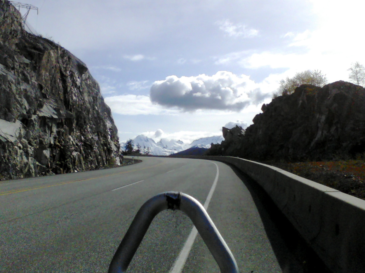"Follow signs for Hwy 99 North. Caution: Shoulder narrows near Porteau Cove and after Brittania Beach." |