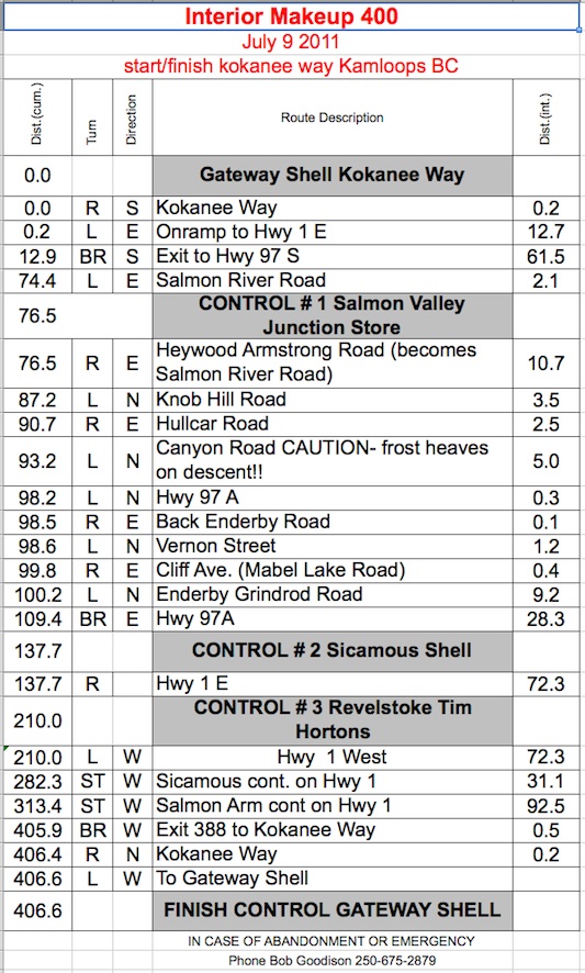 Start / Finish: East Kamloops: Gateway Shell, Kokanee Way