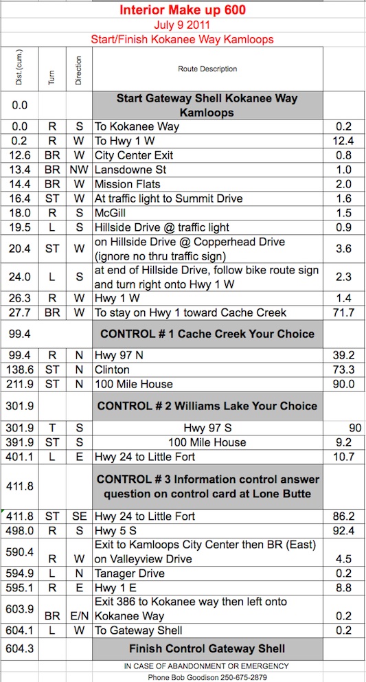 Start / Finish: East Kamloops: Gateway Shell, Kokanee Way