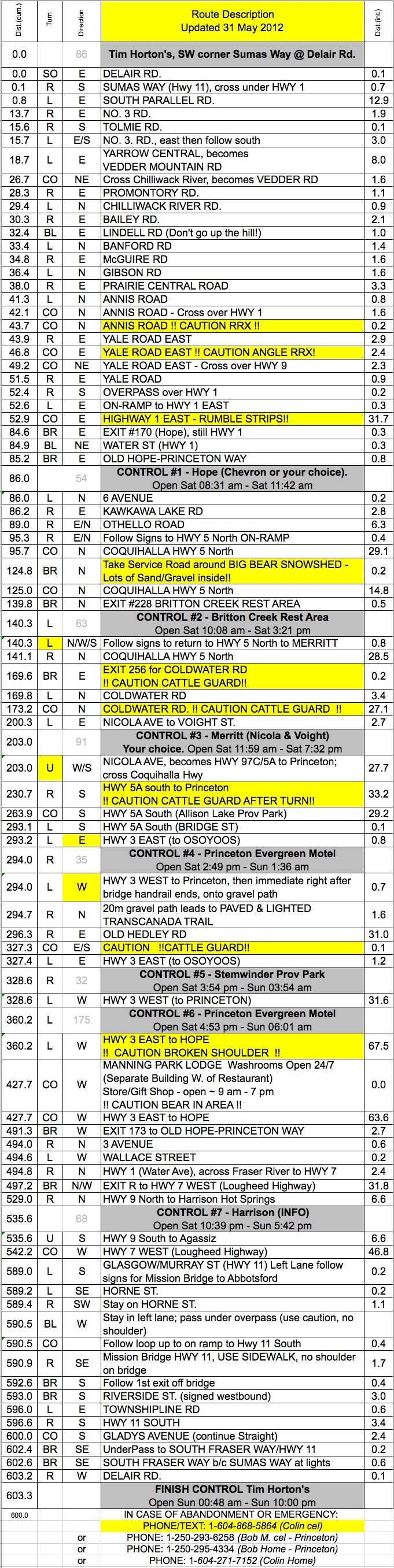 - I have tweaked the out-and-back leg from Princeton to make the turn-around 1 km beyond the Old Hedley Road intersection with Hwy 3 at Stemwinder Provincial Park, with the return now on Hwy 3 direct to the hotel. Simpler, leaves out the rollers coming back and Hwy 3 has a nice clean wide shoulder. This change puts the riders into the sleep control at 360 km. Look for the updated route sheet from the link.