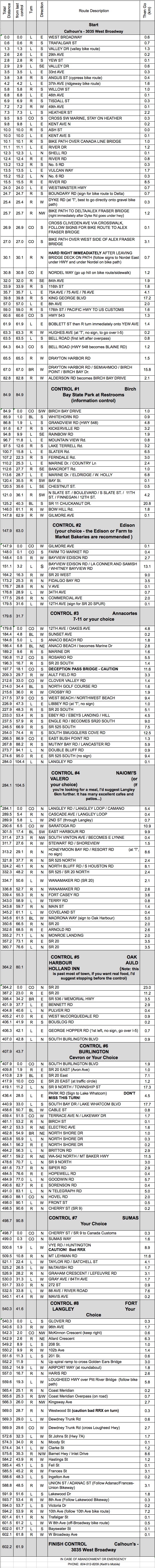 Whidbey Wanderer 600 August 25, 7 a.m. Ride Organizer: Start: Vancouver: Calhoun's, 3035 West Broadway Route Sheet Route Map Teaser photo: Scenic Whidbey Some hotel/motel options at bottom of page.