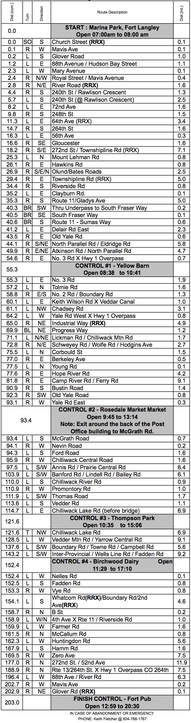 | Note: This is not the official route sheet. Ride organizers may make last minute changes because of road closures or other problems. The route sheet you receive at the start of the ride is the official one. |