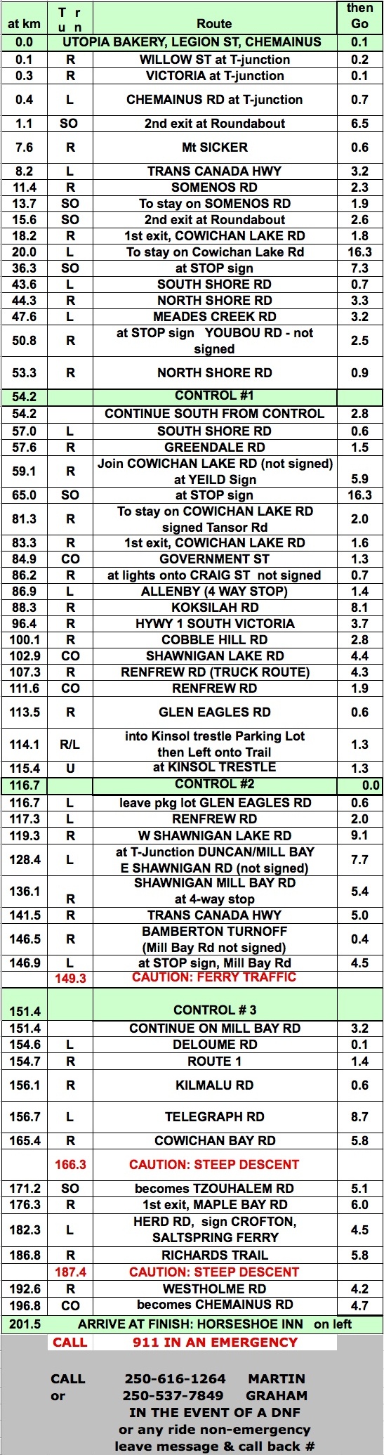 Spring 200 Tour of the Cowichan Valley ~ Revisited April 7, 7 a.m. Ride Organizer: Start: Utopia Bakery, Legion St, Chemainus,(great pastries & coffee) More Info from ride organizer Martin in an article in the Newsletter. Route Sheet Map |