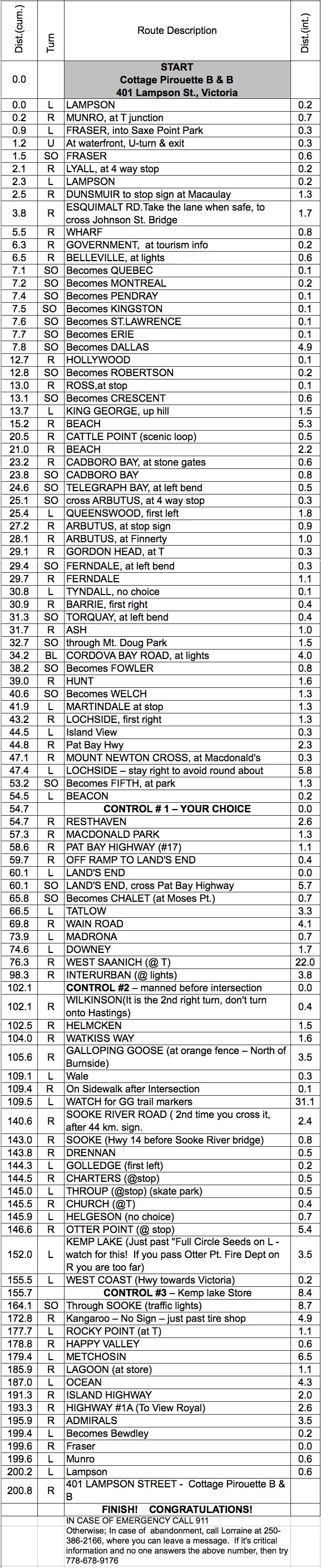 | Note: This is not the official route sheet. Ride organizers may make last minute changes because of road closures or other problems. The route sheet you receive at the start of the ride is the official one. |
