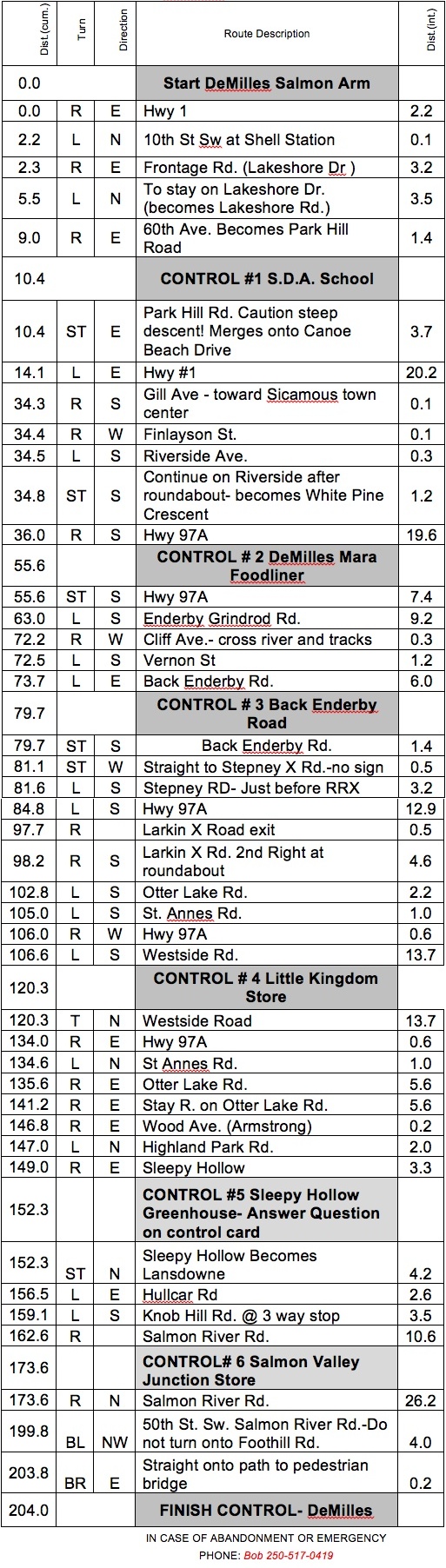 Tour DeMilles - 200 km April 21, 7 a.m. Ride Organizer: Start / Finish: Salmon Arm, Demilles Market Route & Ride Info Route |