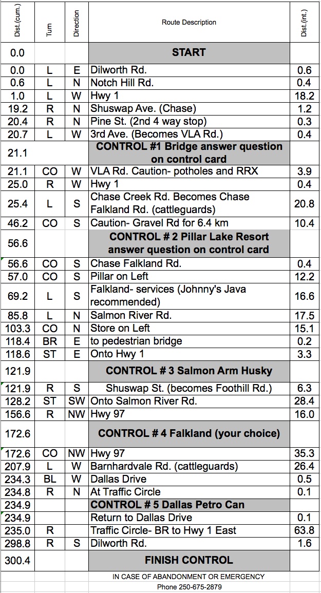 | Note: This is not the official route sheet. Ride organizers may make last minute changes because of road closures or other problems. The route sheet you receive at the start of the ride is the official one. |