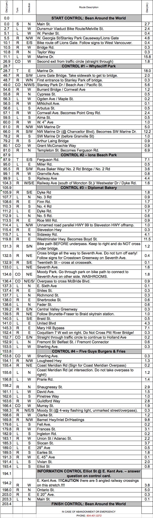 Early Bird 200 "North - West - South - East" Route March 16, 7 a.m. Ride Organizer: Start/Finish: Vancouver, Bean Around the World, 3598 Main Street, at 20th Route Map Route Garmin Connect Route * Route Tips... |