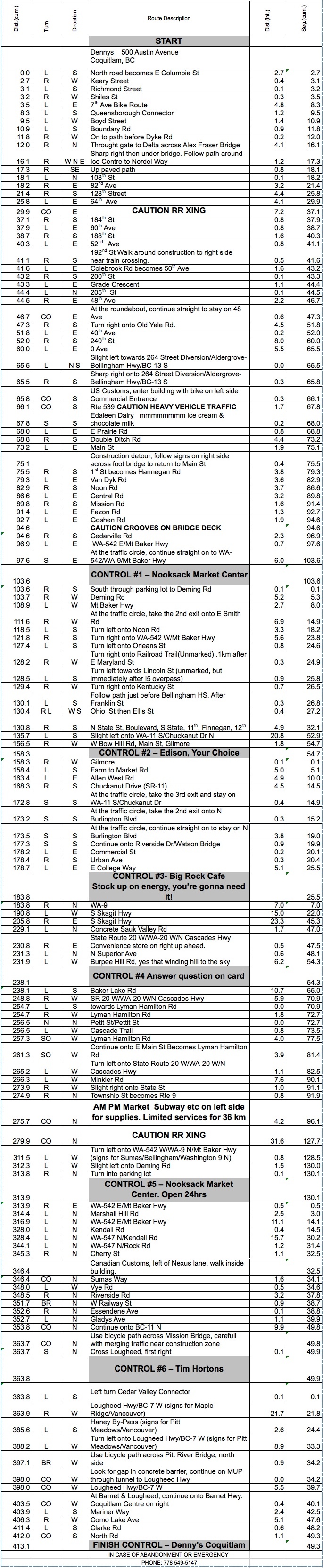 | Note: This is not the official route sheet. Ride organizers may make last minute changes because of road closures or other problems. The route sheet you receive at the start of the ride is the official one. |
