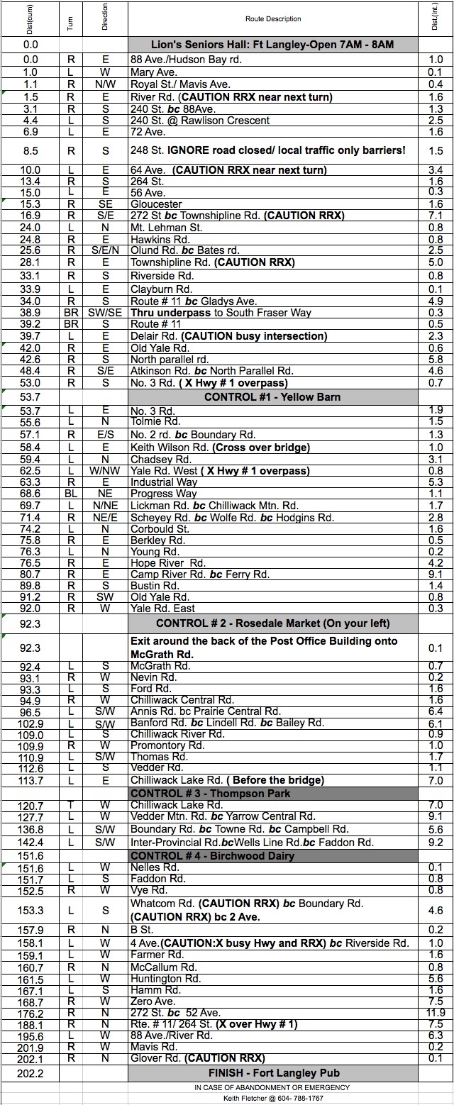 | Note: This is not the official route sheet. Ride organizers may make last minute changes because of road closures or other problems. The route sheet you receive at the start of the ride is the official one. |