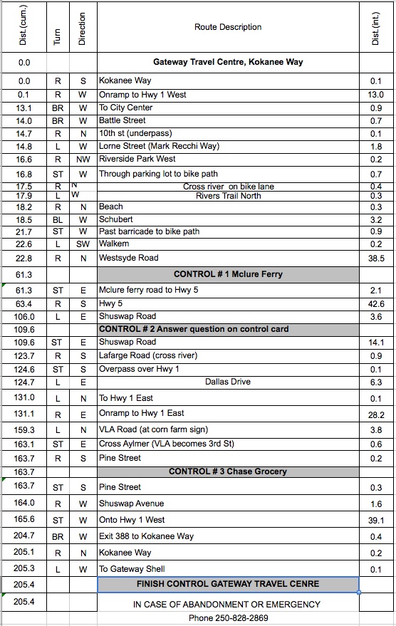 A River Runs Through It 200 km April 20, 7 a.m. Ride Organizer: Start/Finish: Kamloops, Gateway Travel Centre, Kokanee Way (10 minustes east of Kamloops on Trans Canada, Highway) Route Sheet Route Sheet |