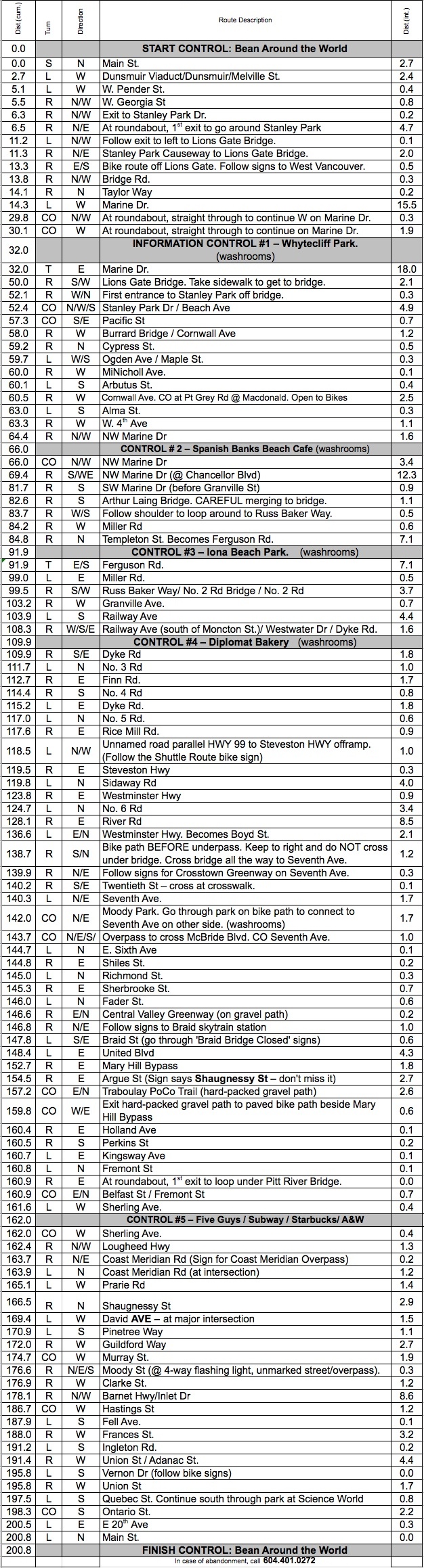 Early Bird 200 "North West South East" route March 15, 7 a.m. Ride Organizer: Start/Finish: Vancouver, Bean Around the World, 3598 Main Street, at 20th 2014 Route 2014 Map Route Tips...