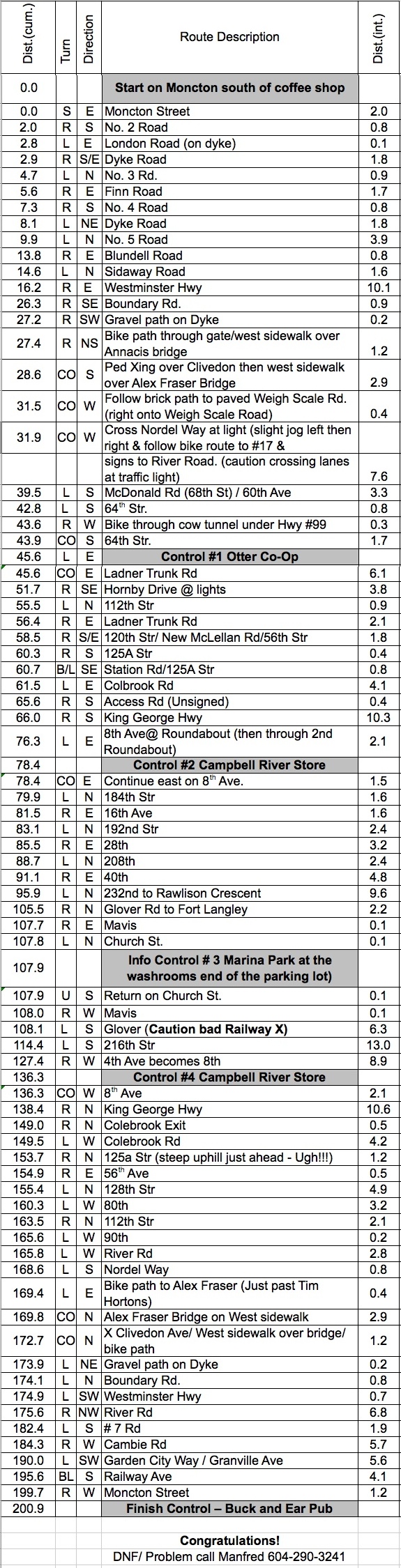 Buccaneer 200 April 12, 7 a.m. Ride Organizer: Start/Finish: Richmond/Steveston: Steveston Hotel Coffee (Moncton & 3rd) Route Map Route Sheet