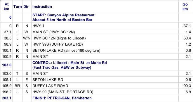 Lower Mainland Brevets Ride Organizers: Start: Canyon Alpine Restaurant, 5 km north of Boston Bar Route Sheet Map etc. Notes |