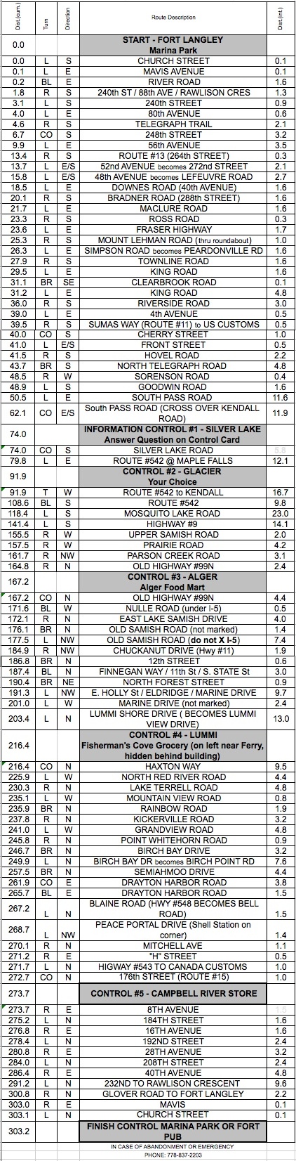 Whatcom Wamble 300 July 26, 6 a.m. Ride Organizer: Start: Fort Langley: Marina Park Route Sheet Route Notes Gary, reminds you to bring your passport. |