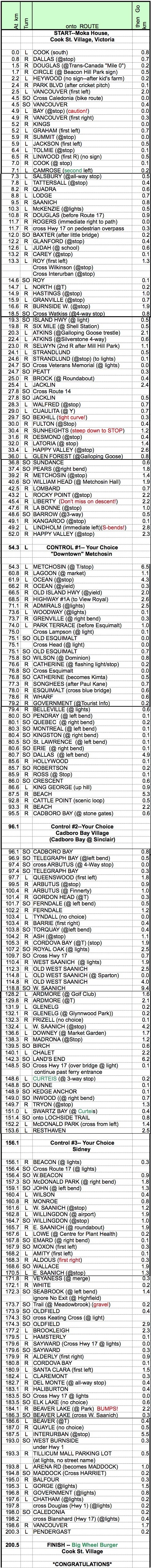 | Note: This is not the official route sheet. Ride organizers may make last minute changes because of road closures or other problems. The route sheet you receive at the start of the ride is the official one. |